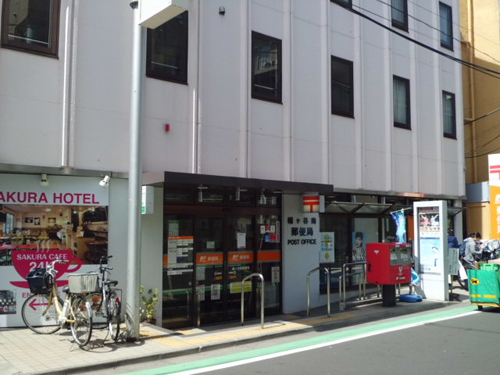 サクラホテルの隣は幡ヶ谷郵便局。ホテル1階はサクラカフェ。
