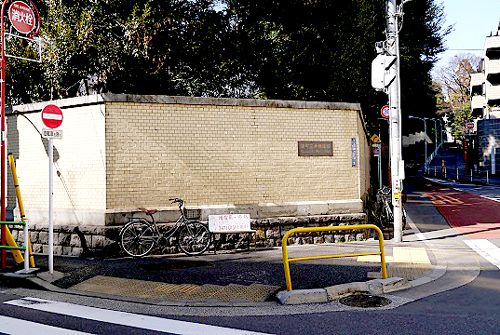 三井倶楽部のレンガ塀に沿った緩やかな散歩道 イタリア大使館へ続きます