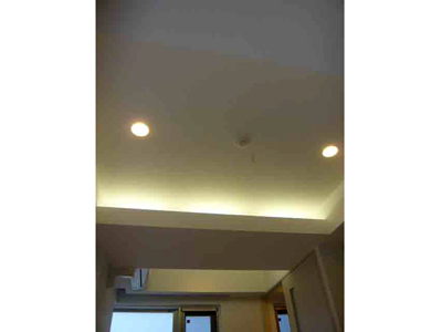 天井に落ち着いた雰囲気の間接照明が設置されています。