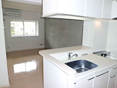 カウンターキッチンよりリビング全景。