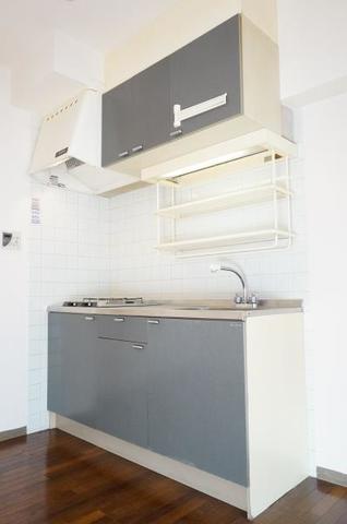 収納性のあるレンジフード付き2口コンロシステムキッチン